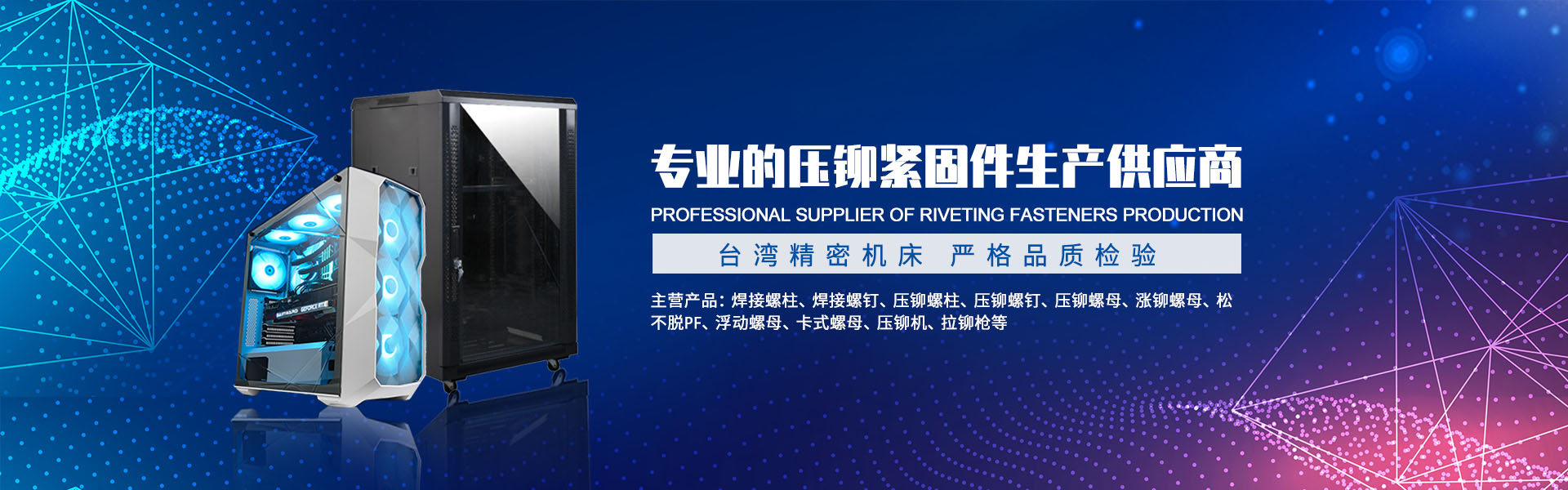 主要產品包括PEM壓鉚緊固件,面板緊固件(松不脫),不銹鋼卡式螺母,部分冷鐓螺母以及非標車制零部件,拉鉚螺母。手動鉚接工具,氣動鉚接工具。代理銷售美國雅固拉(Accuride)電子滑軌,美國索斯科(Southco)鎖具等等國內外知名品牌。廣泛地應用于電子機箱,通信設備,機械設備,船舶制造、汽車制造、裝飾裝潢、電器儀表等各種行業。